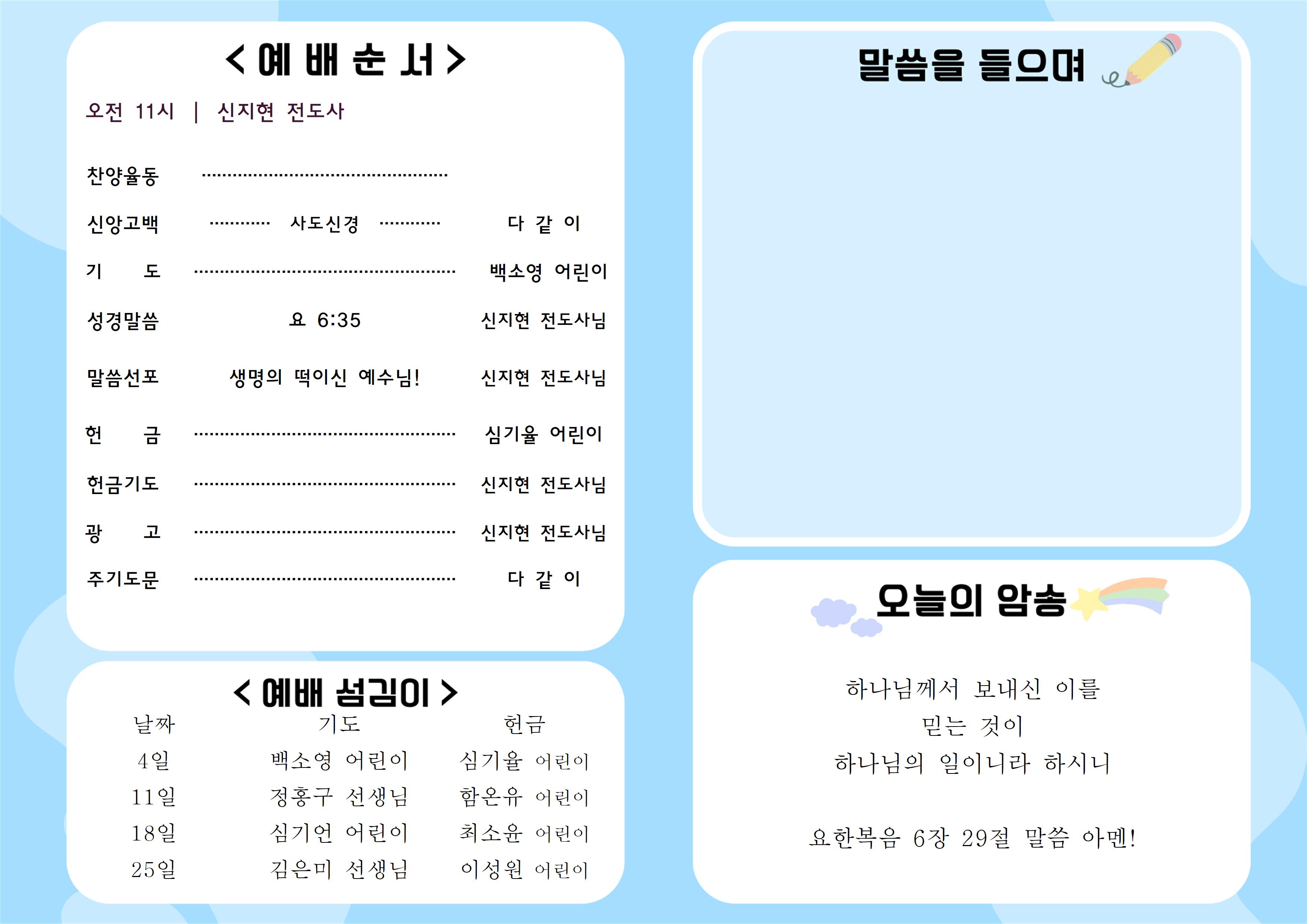 2024년 8월 4일 유치부&아동부 주보