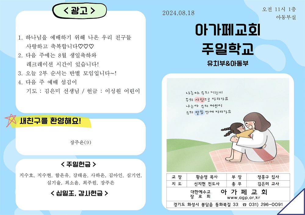 2024년 8월 18일 유치부&아동부 주보