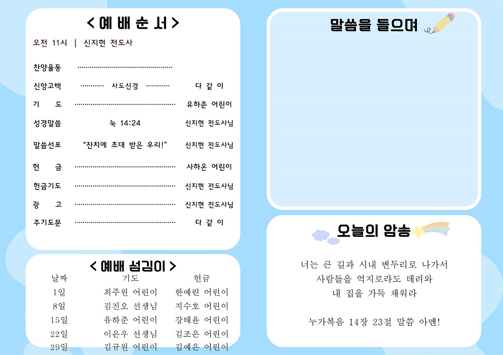 샬롬! 대한예수교장로회 아가페교회에 오신걸 진심으로 환영합니다.