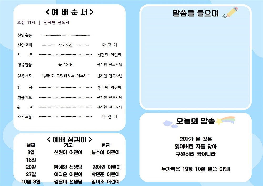 2024년 10월 6일 유치부&아동부 주보