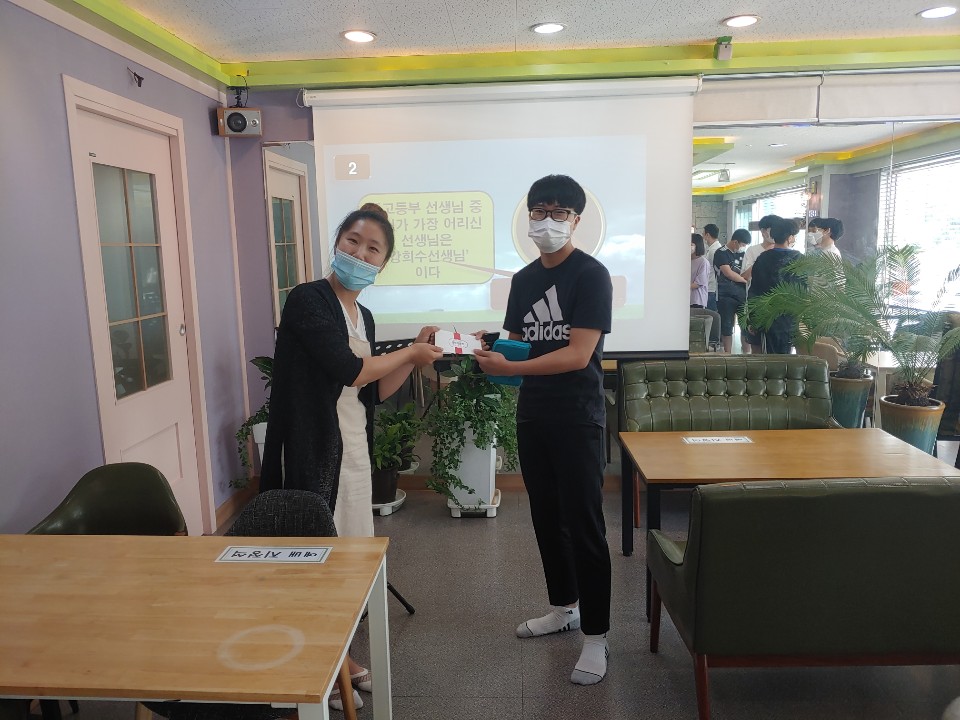 희수쌤을 응원한 남자친구 세명이 선물을 받게 되었답니다.