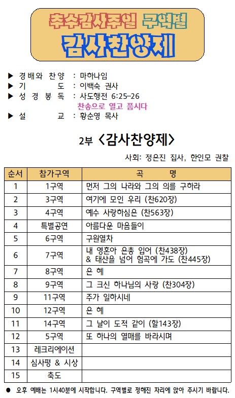 [행사사진] 추수감사주일 구역별 감사 찬양제