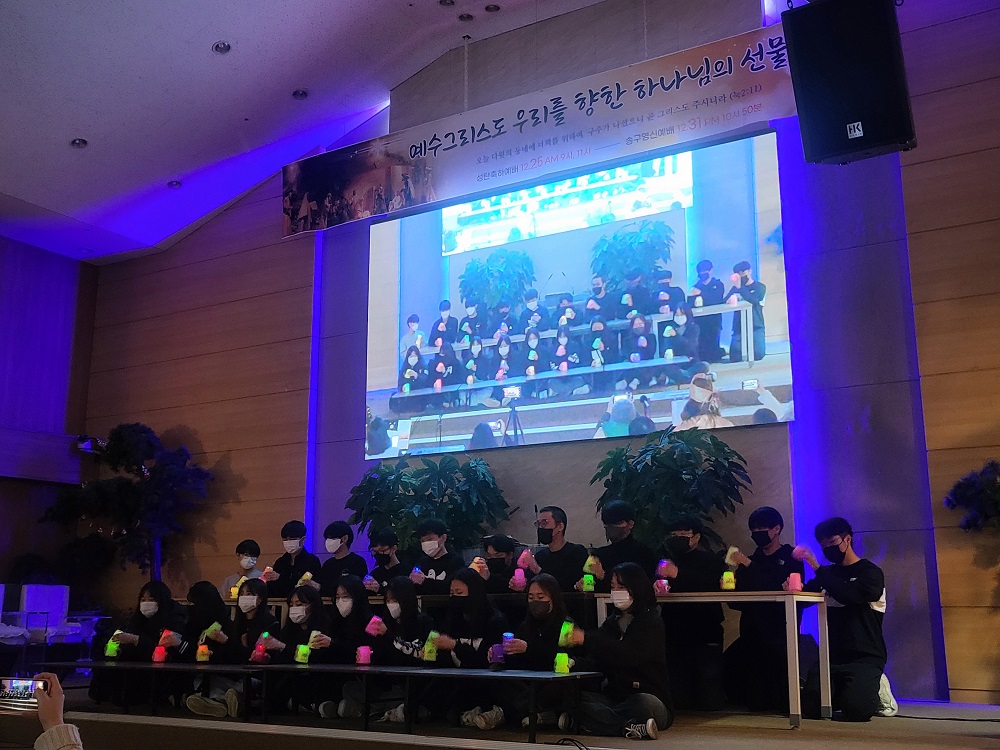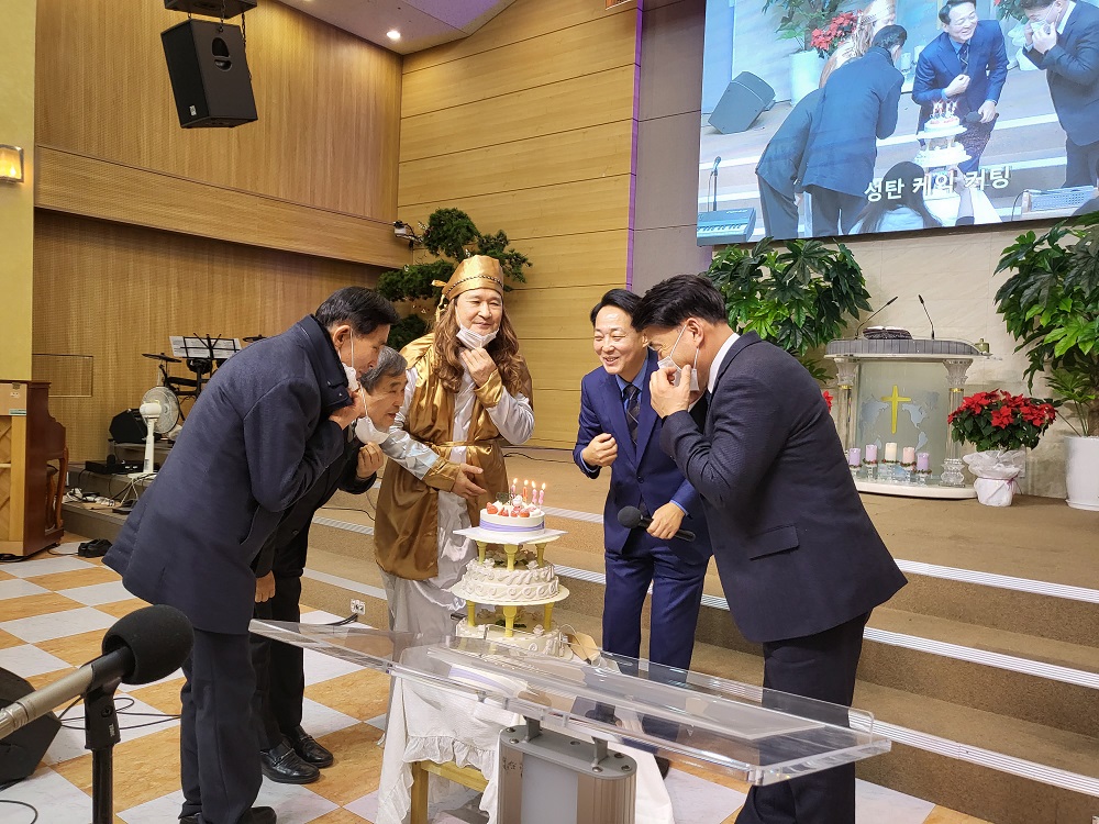 성탄축하예배 1. 동방박사 축하 2. 케잌컷팅 3. 축하 공연 : 유아유치부 4. 축하 공연 : 아동부 5. 축하 공연 : 중고등부 6. 축하공연 : 청년부 7. 찬양 : 시온찬양대 8. 찬양 : 글로리아찬양단