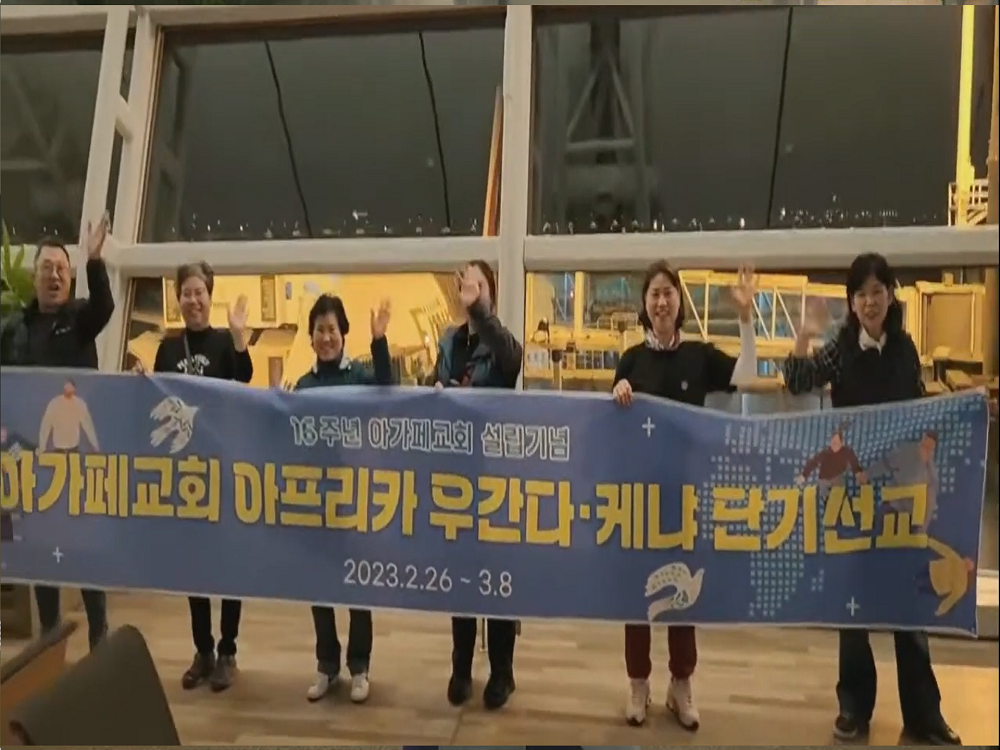 우간다 부캄바 아가페교회 헌당감사 및 단기선교보고예배 인도 : 허명종 안수집사(선교위원장) 대표기도 : 노유미 집사(선교부장) 간증 : 이수근 집사, 황영희 권사, 최희숙 권사 특별 찬양 : 단기선교팀(최희숙 권사, 황영희 권사, 노유미 집사, 이수근 집사, 이해분 집사)