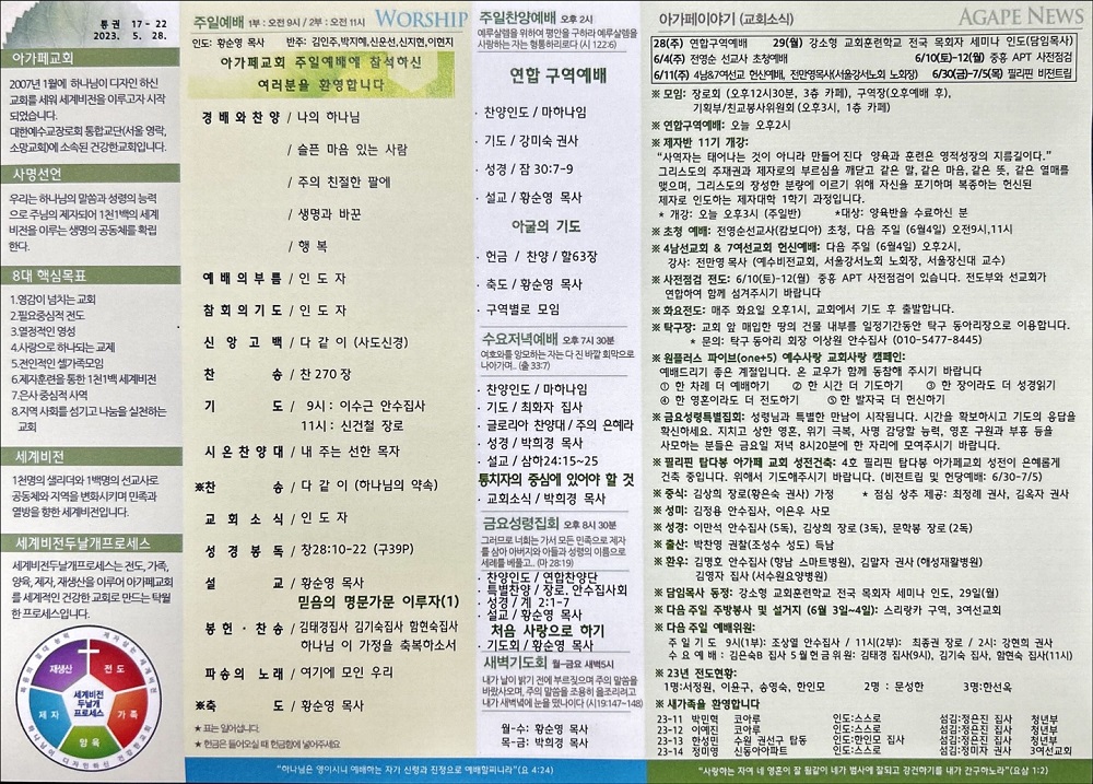 2023년 5월 28일 아가페교회 소식