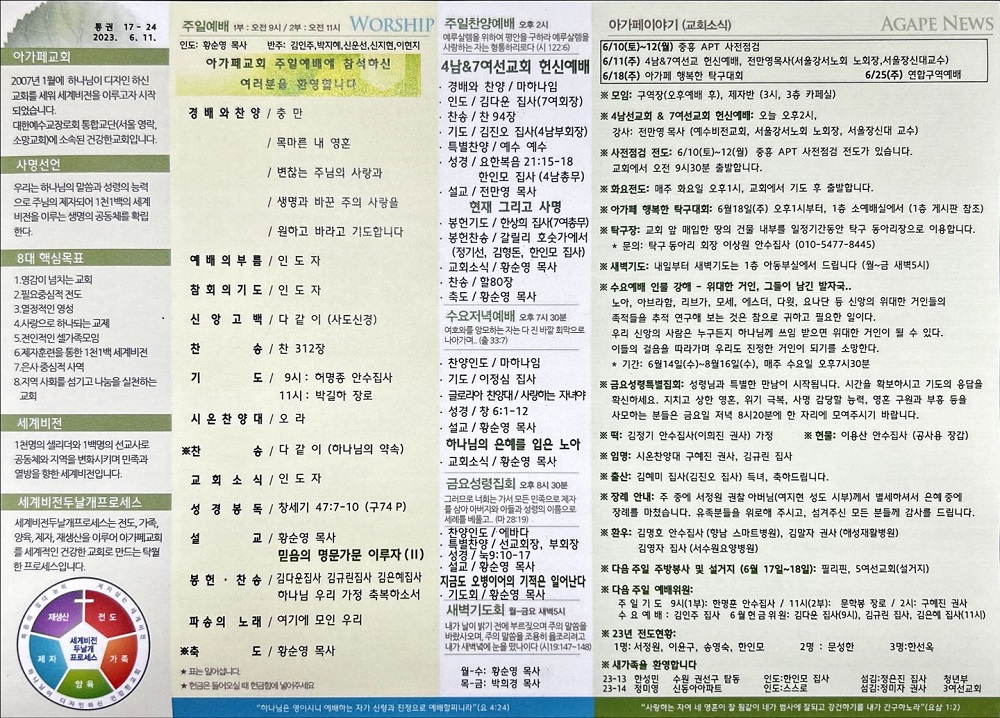 2023년 6월 11일 아가페교회 소식