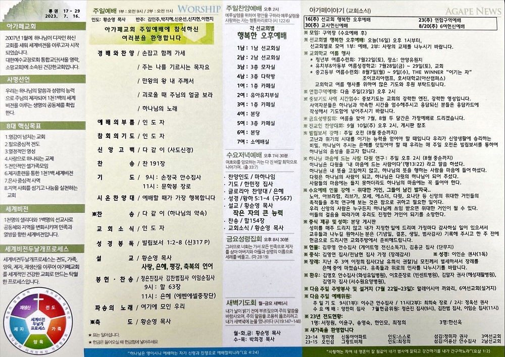 샬롬! 대한예수교장로회 아가페교회에 오신걸 진심으로 환영합니다.