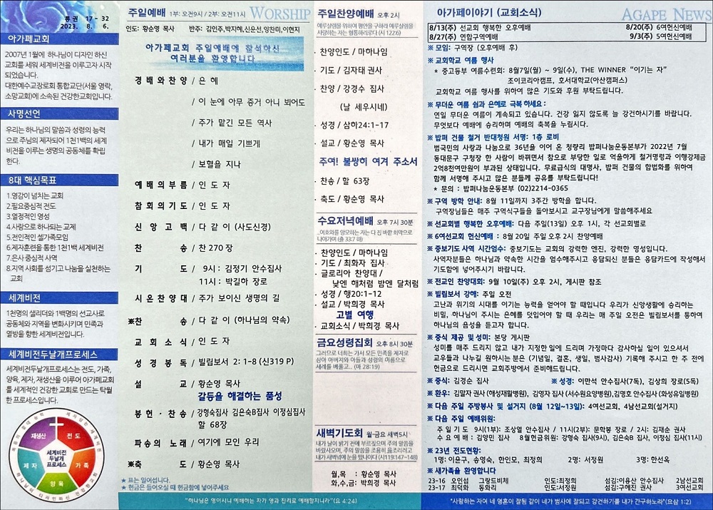 샬롬! 대한예수교장로회 아가페교회에 오신걸 진심으로 환영합니다.