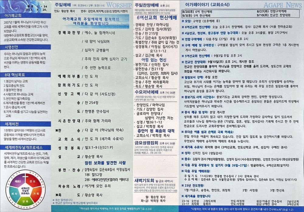 2023년 8월 20일 아가페교회 소식