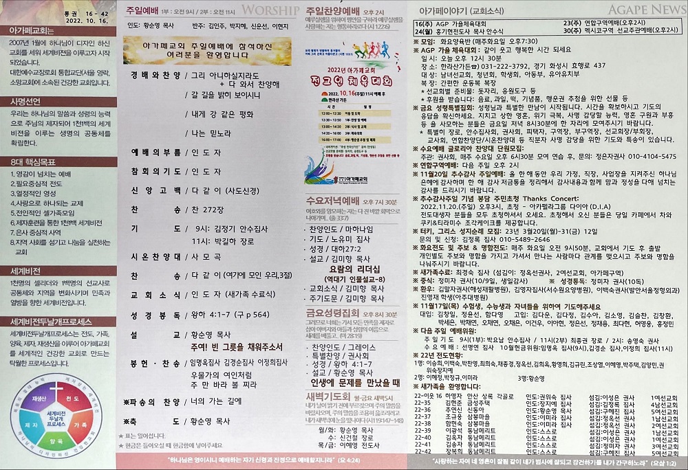 2022년 10월 16일 아가페교회소식