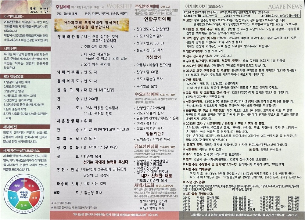 2022년 11월 27일 아가페교회소식