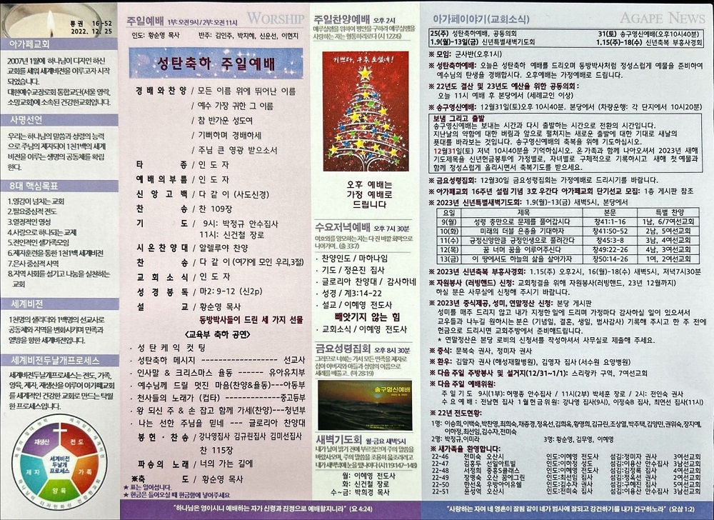 2022년 12월 25일 아가페교회 소식