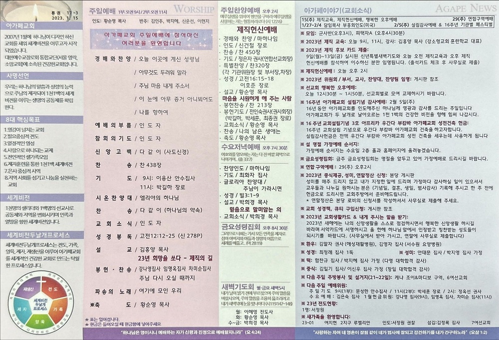 샬롬! 대한예수교장로회 아가페교회에 오신걸 진심으로 환영합니다.
