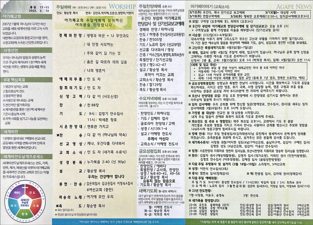 샬롬! 대한예수교장로회 아가페교회에 오신걸 진심으로 환영합니다.