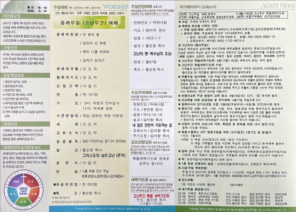 샬롬! 대한예수교장로회 아가페교회에 오신걸 진심으로 환영합니다.