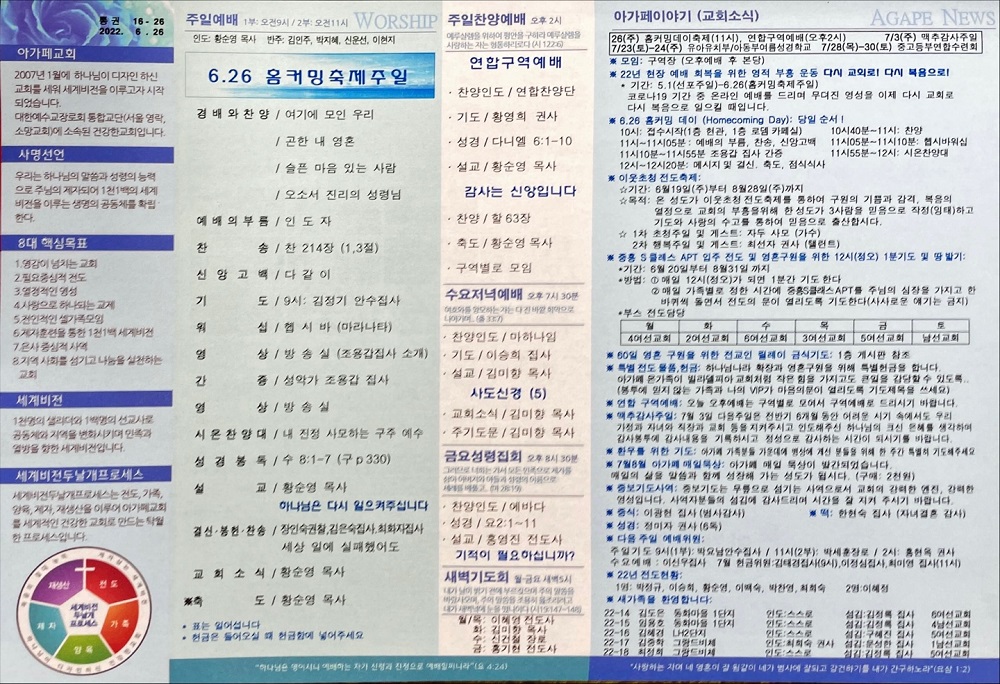2022년 6월 26일 아가페교회 소식