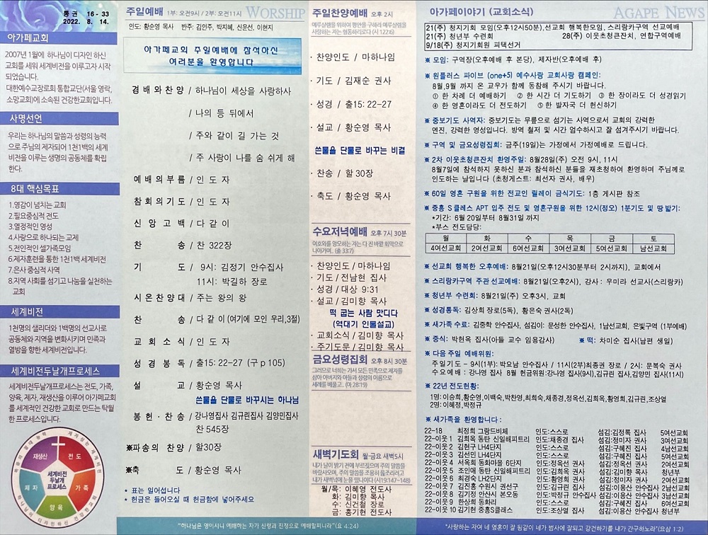 2022년 8월 14일 아가페교회 소식