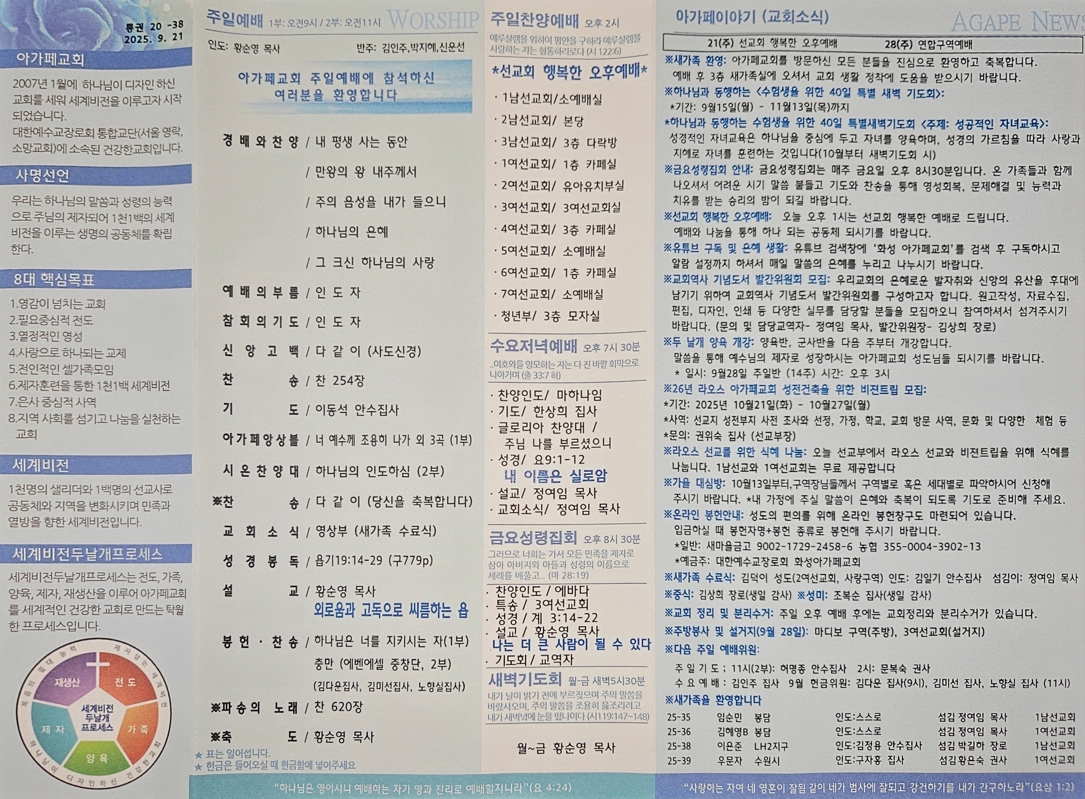2025년 9월 21일 아가페교회 소식