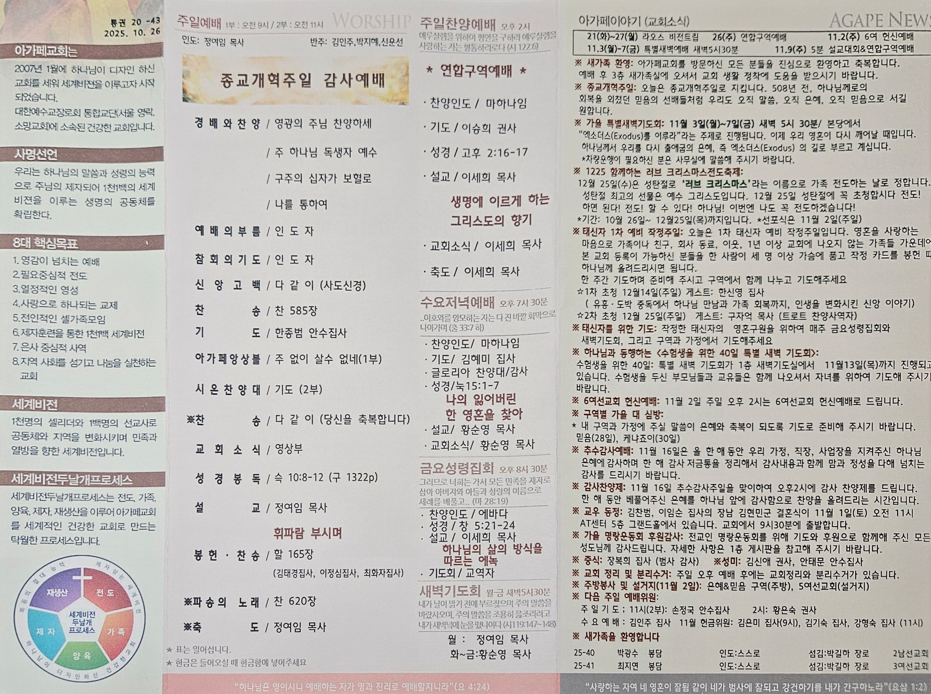 샬롬! 대한예수교장로회 아가페교회에 오신걸 진심으로 환영합니다.