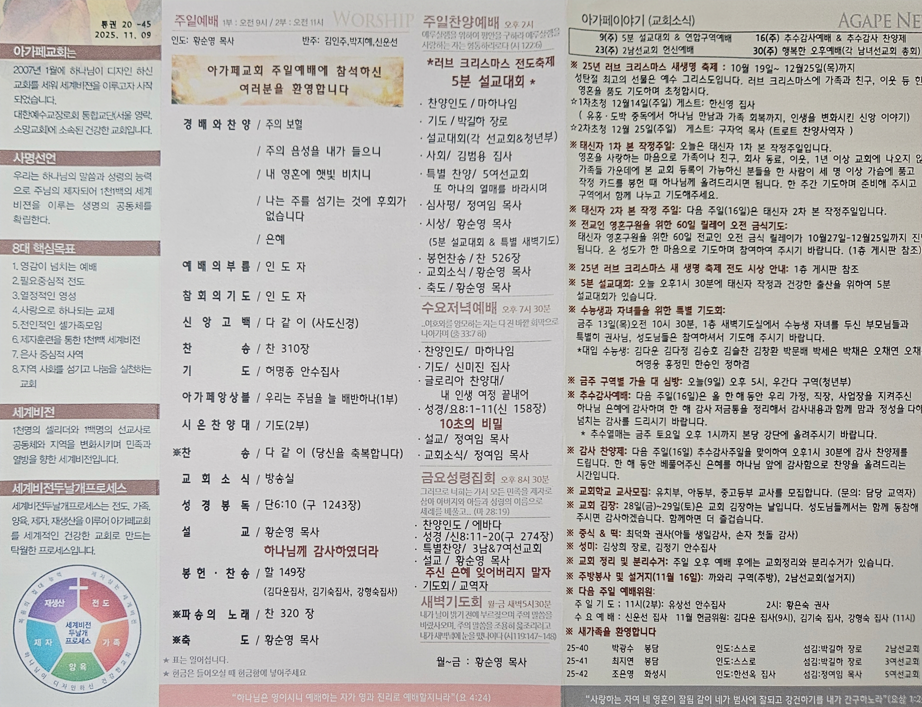 샬롬! 대한예수교장로회 아가페교회에 오신걸 진심으로 환영합니다.