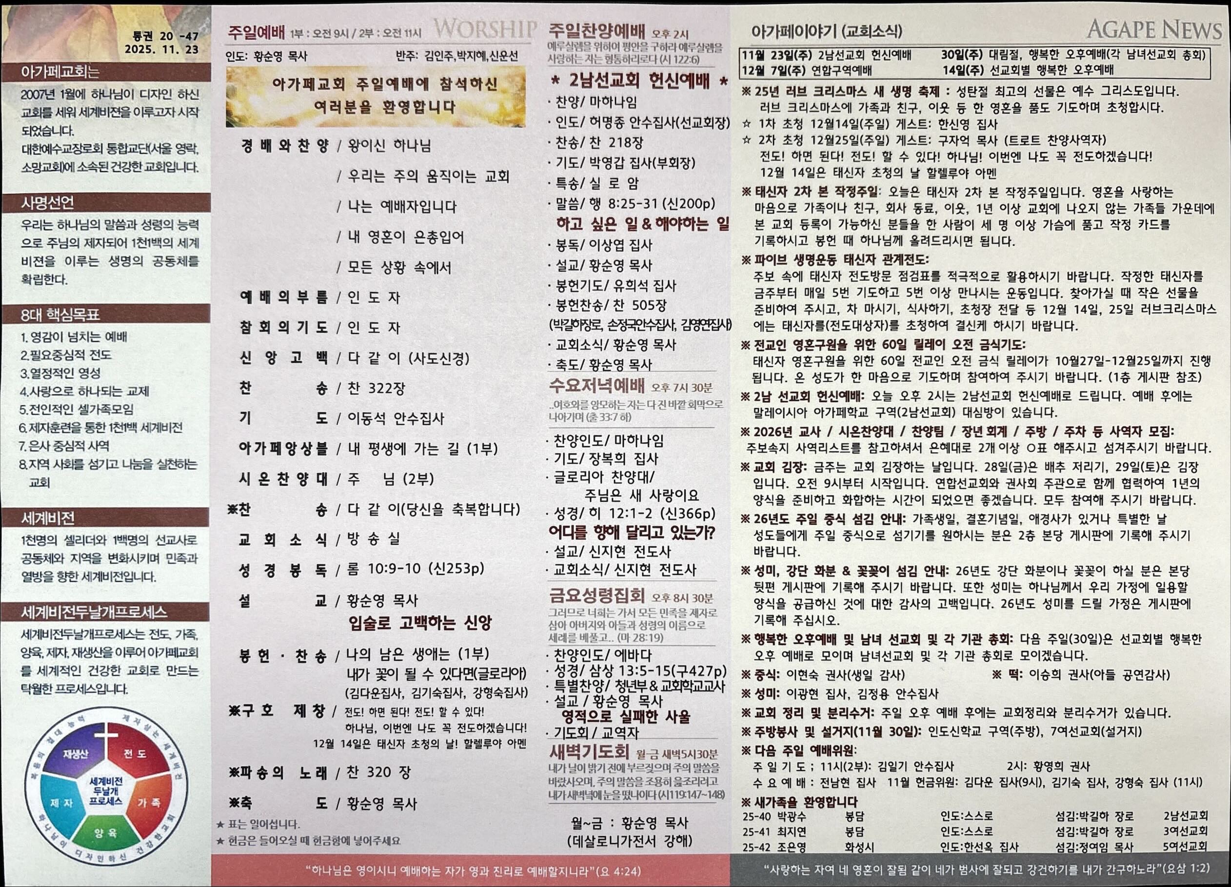 샬롬! 대한예수교장로회 아가페교회에 오신걸 진심으로 환영합니다.