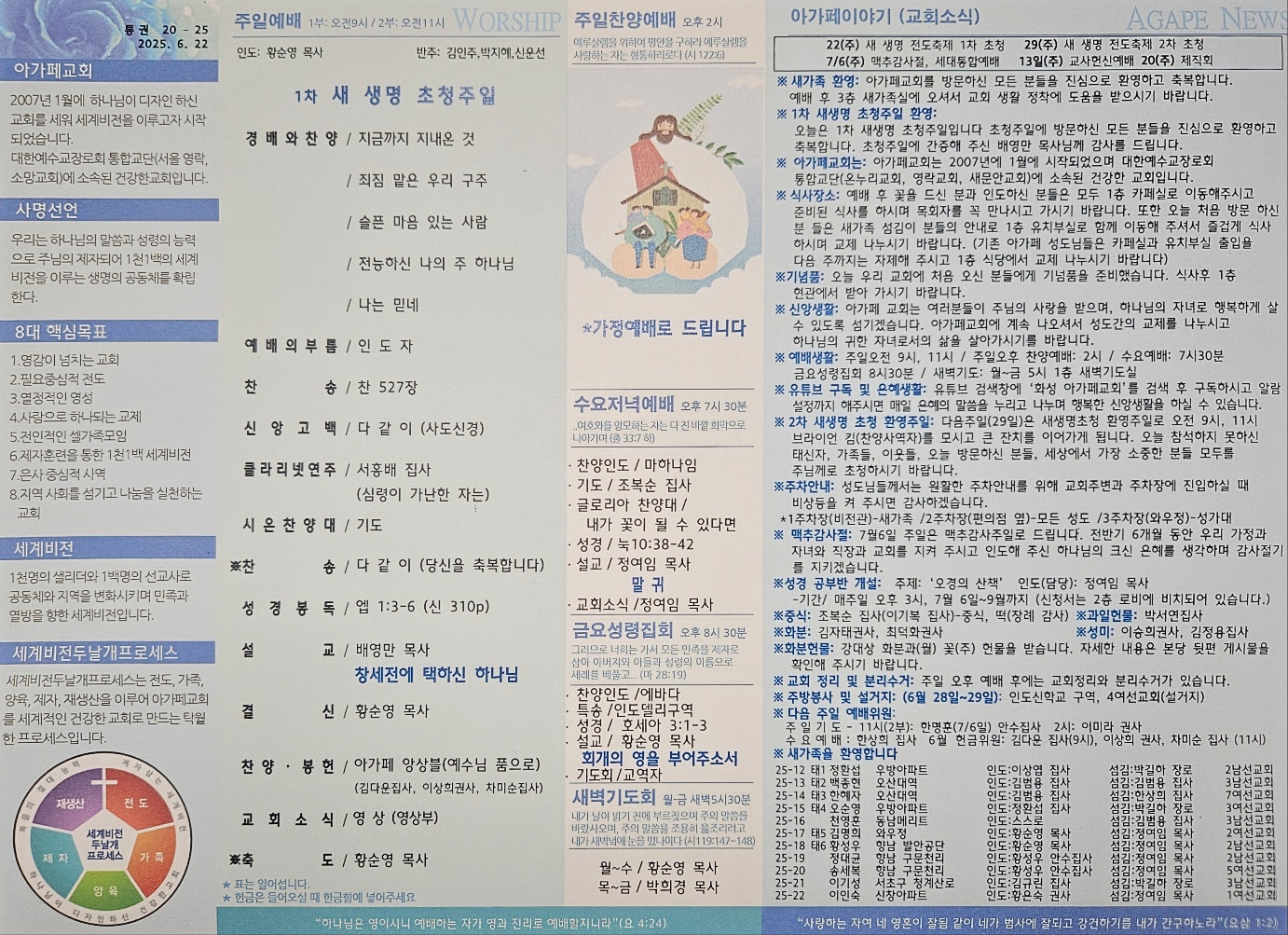 샬롬! 대한예수교장로회 아가페교회에 오신걸 진심으로 환영합니다.