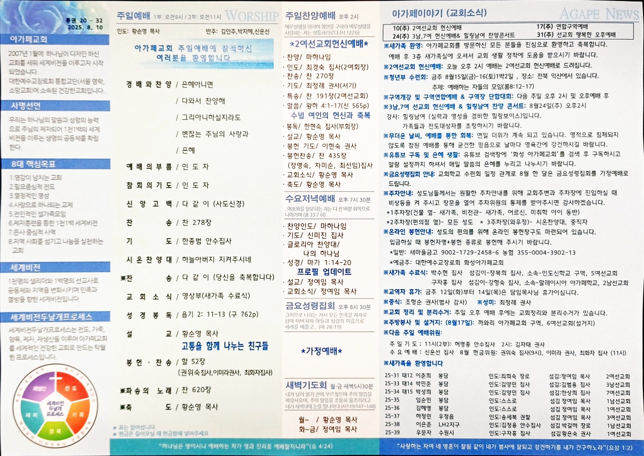 2025년 8월 10일 아가페교회 소식