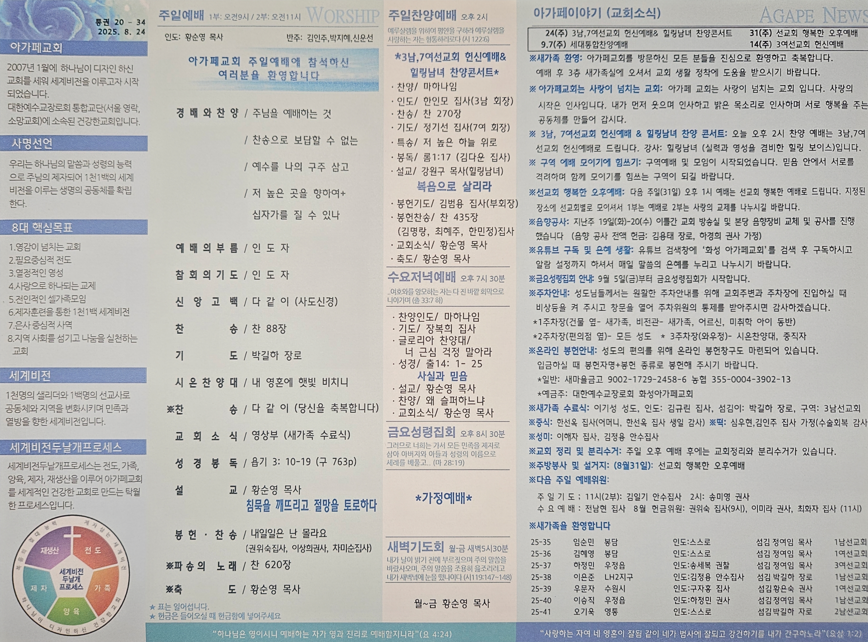 2025년 8월 24일 아가페교회 소식