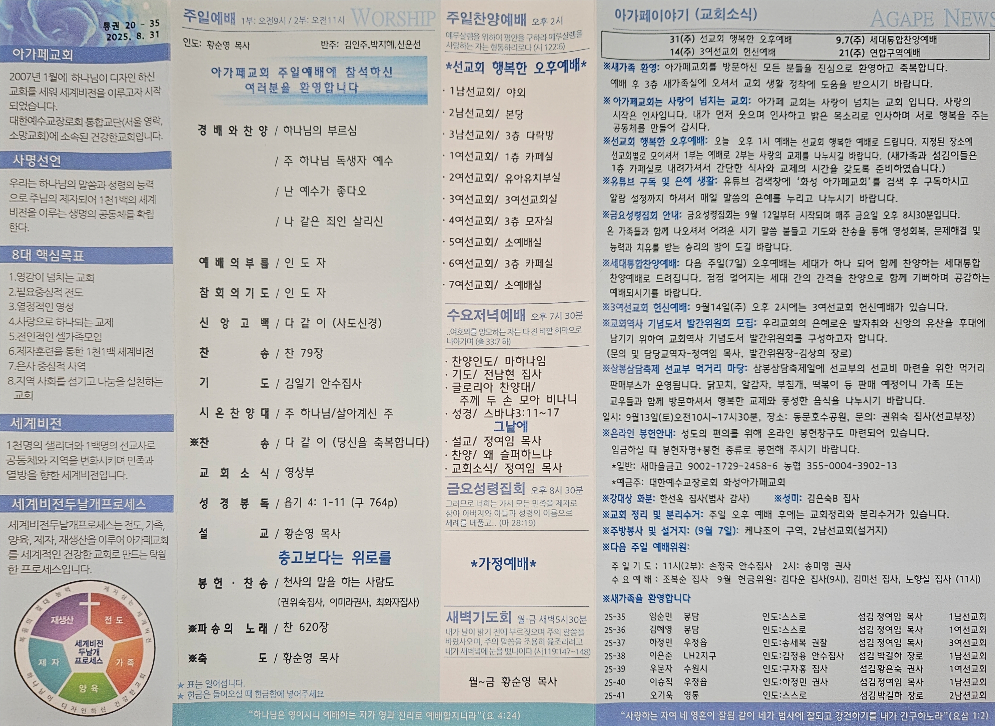 2025년 08월 31일 아가페교회 소식