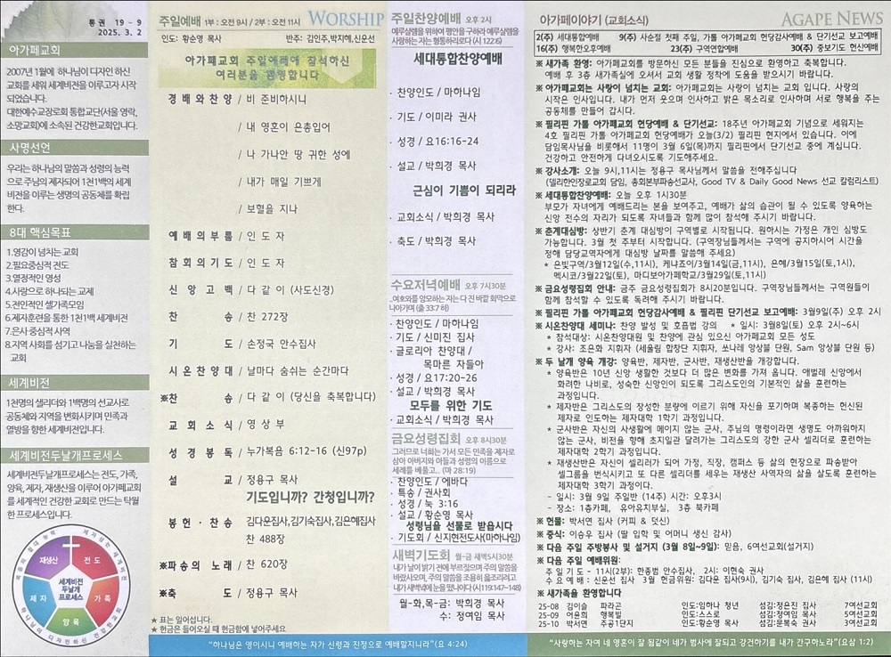 샬롬! 대한예수교장로회 아가페교회에 오신걸 진심으로 환영합니다.