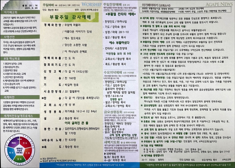 샬롬! 대한예수교장로회 아가페교회에 오신걸 진심으로 환영합니다.