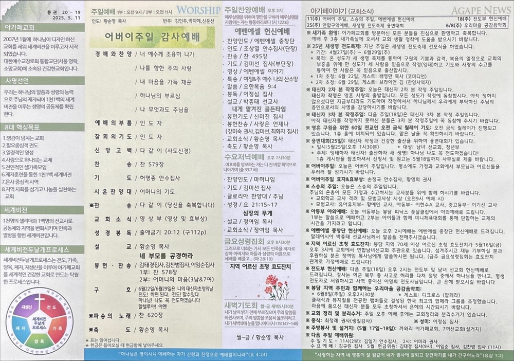 샬롬! 대한예수교장로회 아가페교회에 오신걸 진심으로 환영합니다.