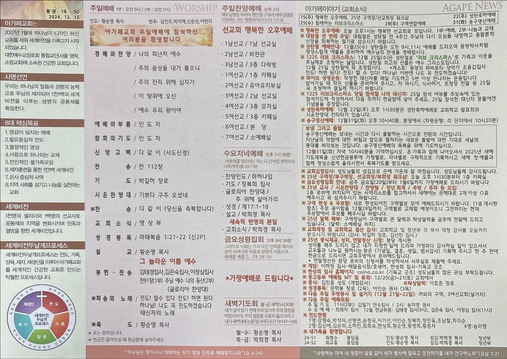 2024년 12월 15일 아가페교회 소식