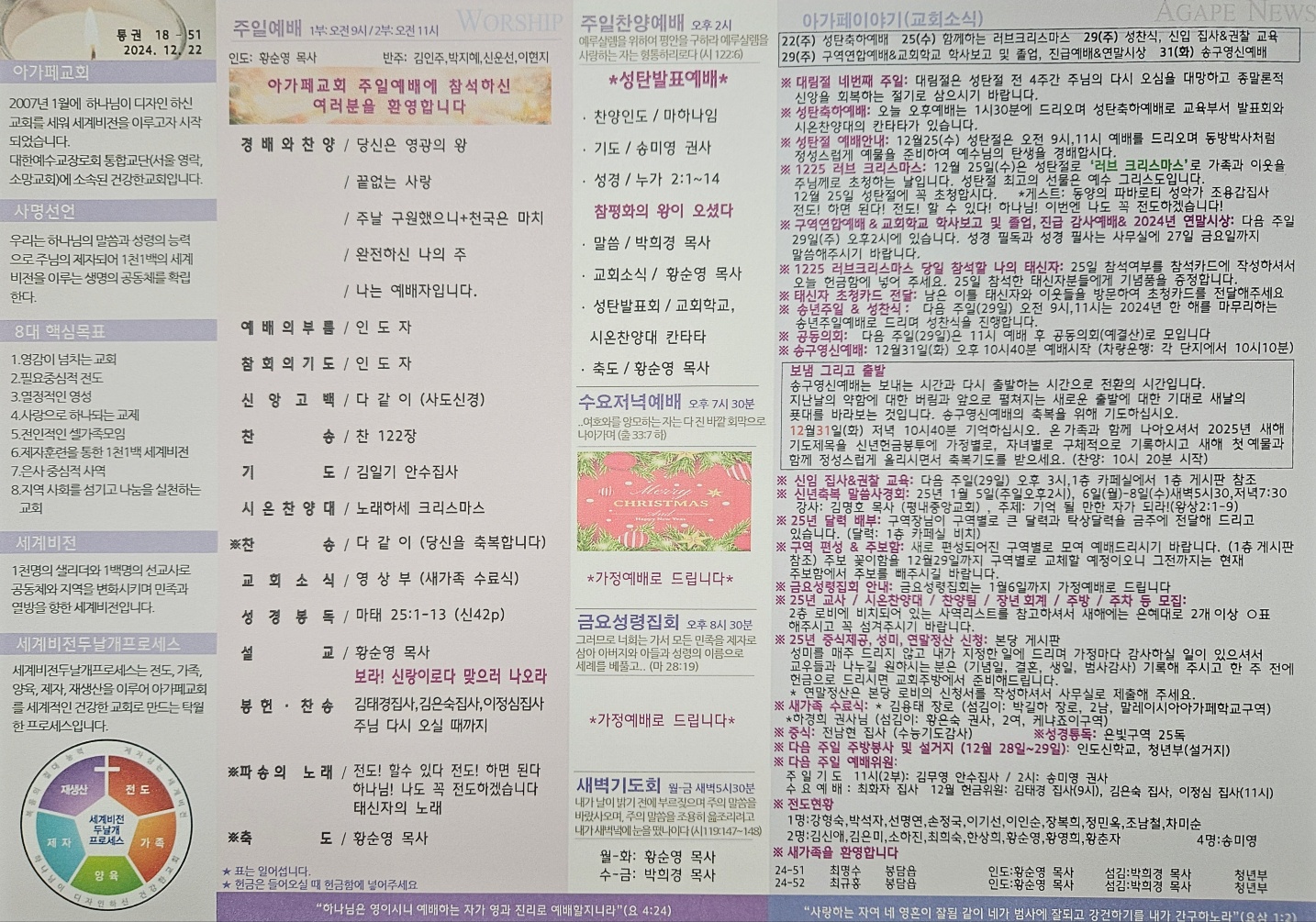 2024년 12월 22일 아가페교회 소식
