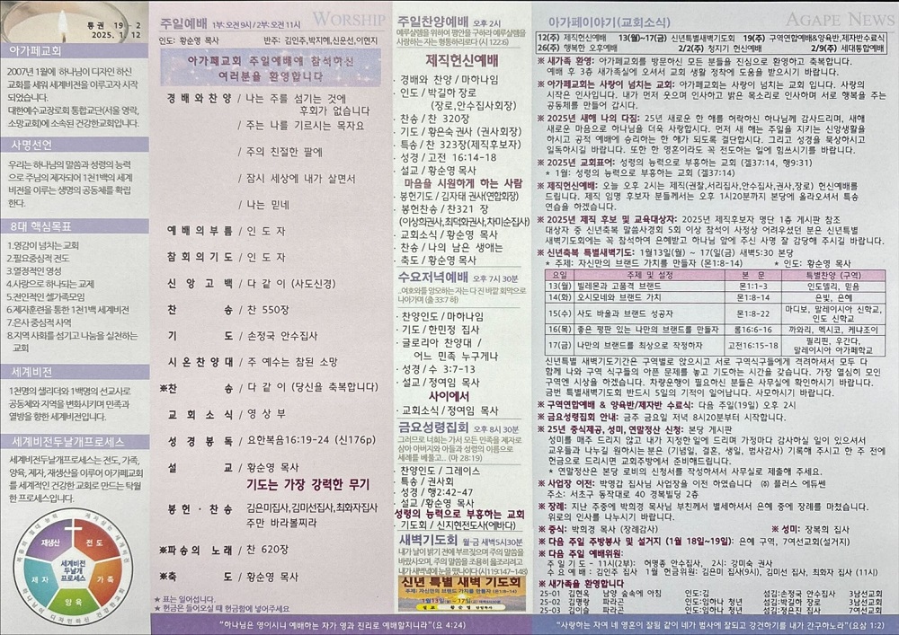 2025년 1월 12일 아가페교회 소식
