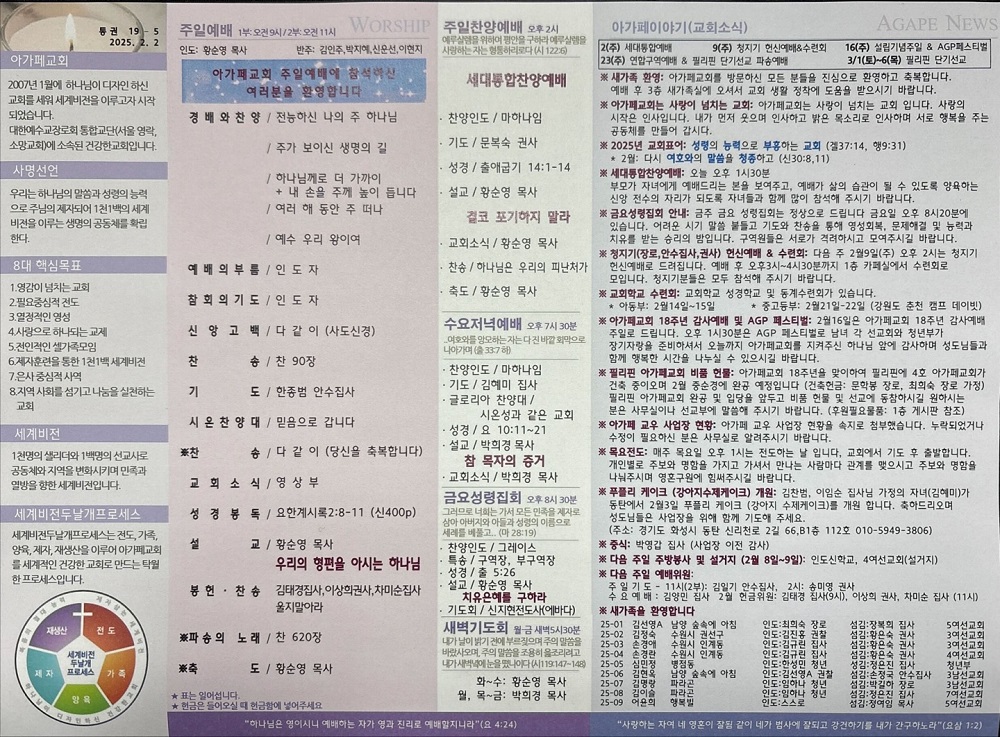 샬롬! 대한예수교장로회 아가페교회에 오신걸 진심으로 환영합니다.