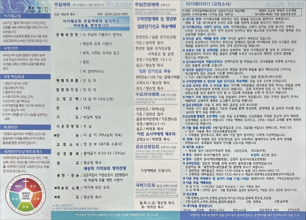 2024년 8월 11일 아가페교회 소식