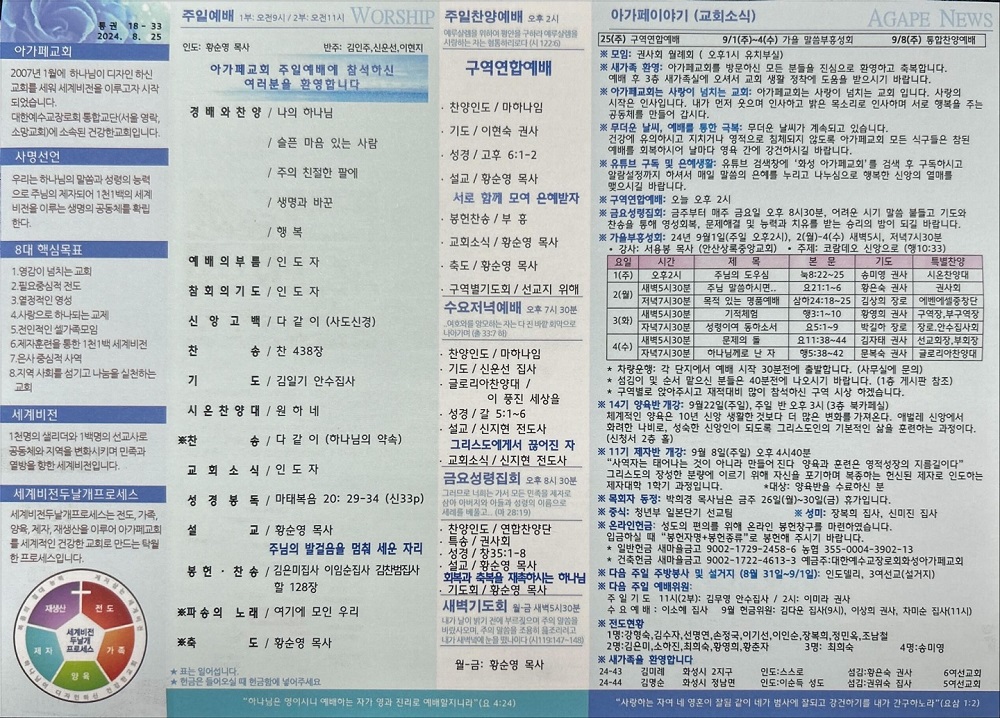 2024년 8월 25일 아가페교회 소식