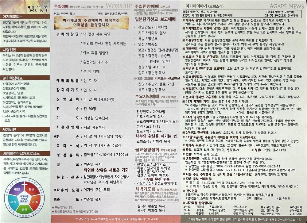 2024년 9월 8일 아가페교회 소식