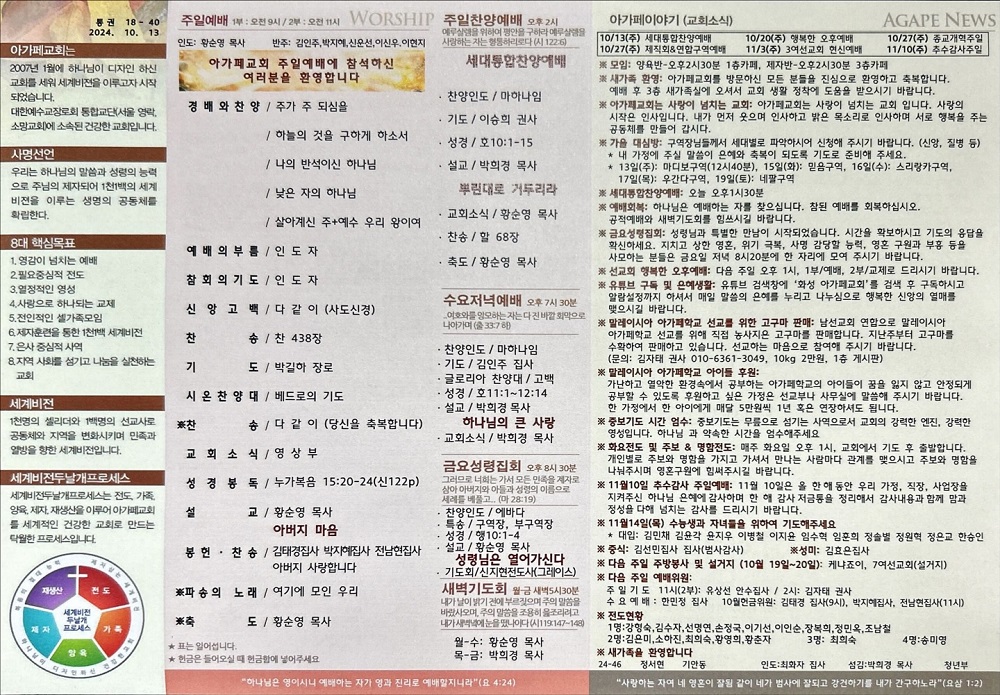 샬롬! 대한예수교장로회 아가페교회에 오신걸 진심으로 환영합니다.