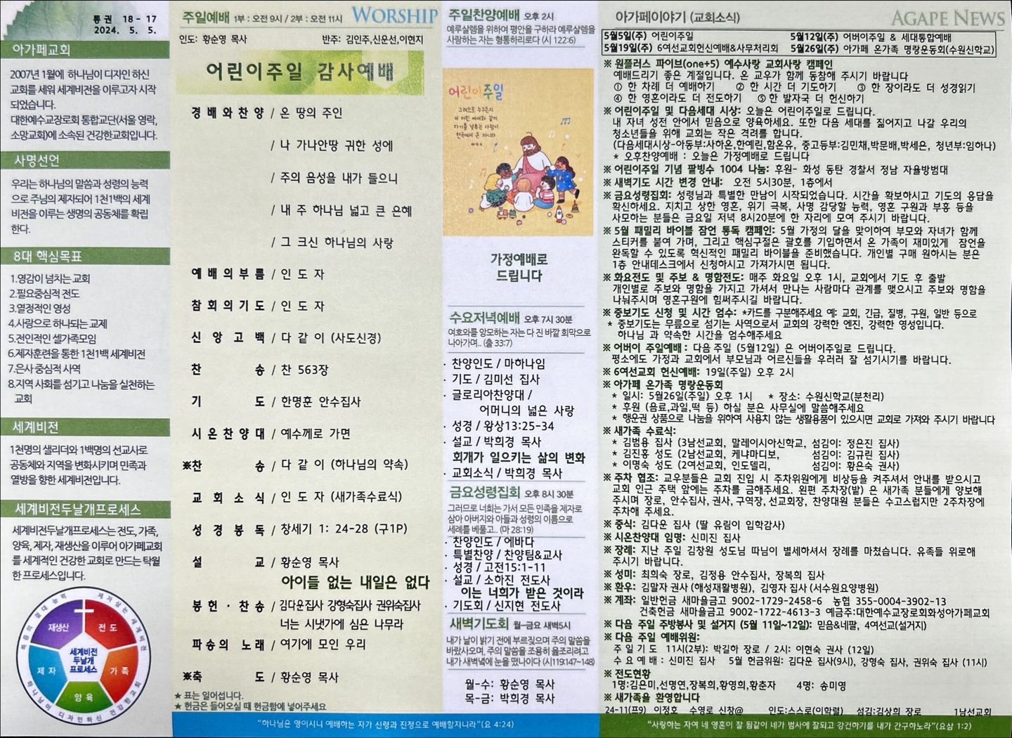 2024년 05월 05일 아가페교회 소식