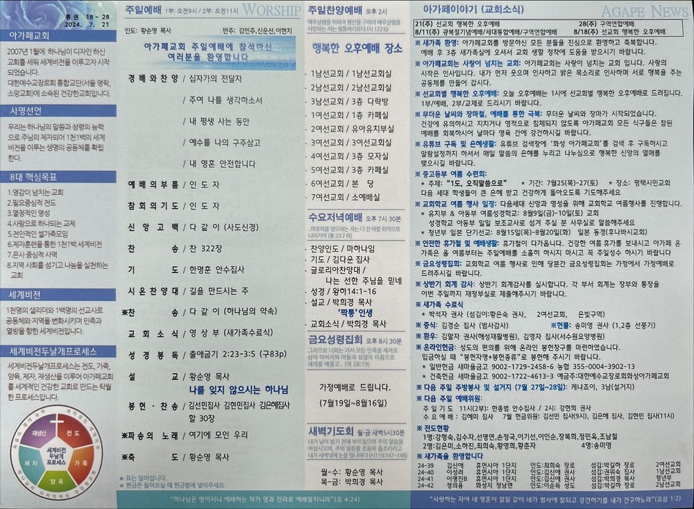 2024년 7월 21일 아가페교회 소식