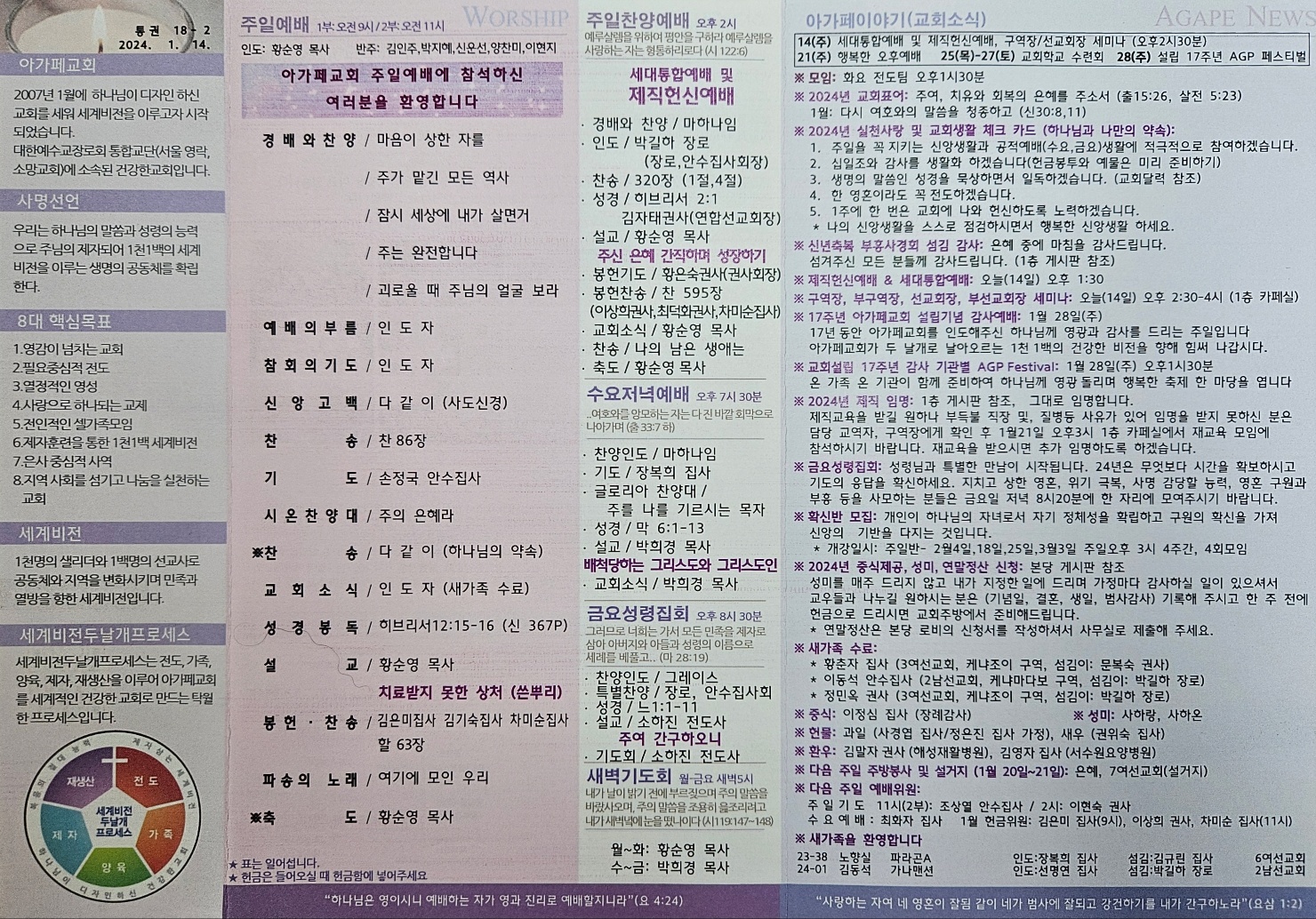 2024년 01월 14일 아가페교회 소식