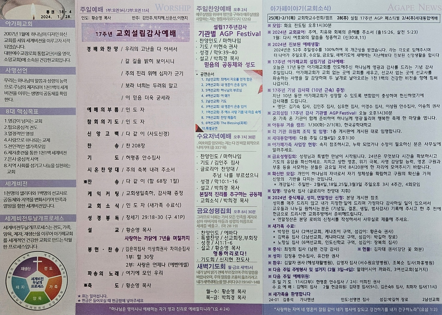 2024년 01월 28일 아가페교회 소식