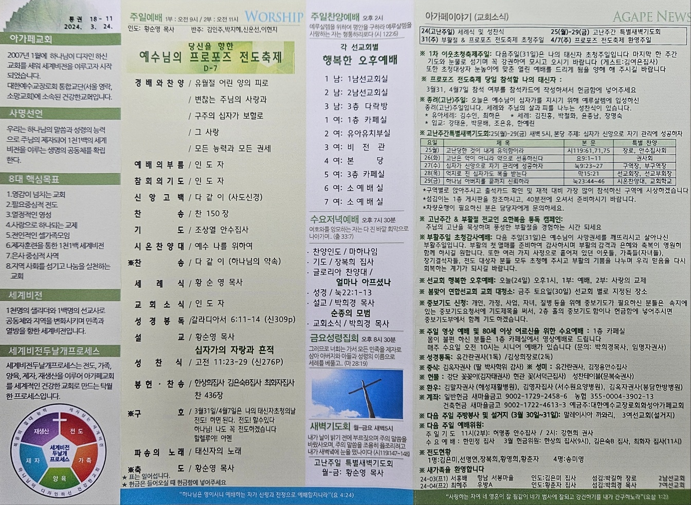 2024년 03월 24일 아가페교회 소식