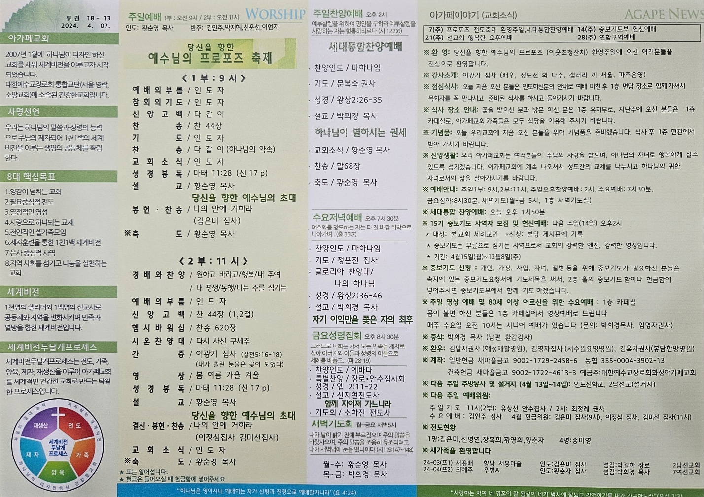 샬롬! 대한예수교장로회 아가페교회에 오신걸 진심으로 환영합니다.