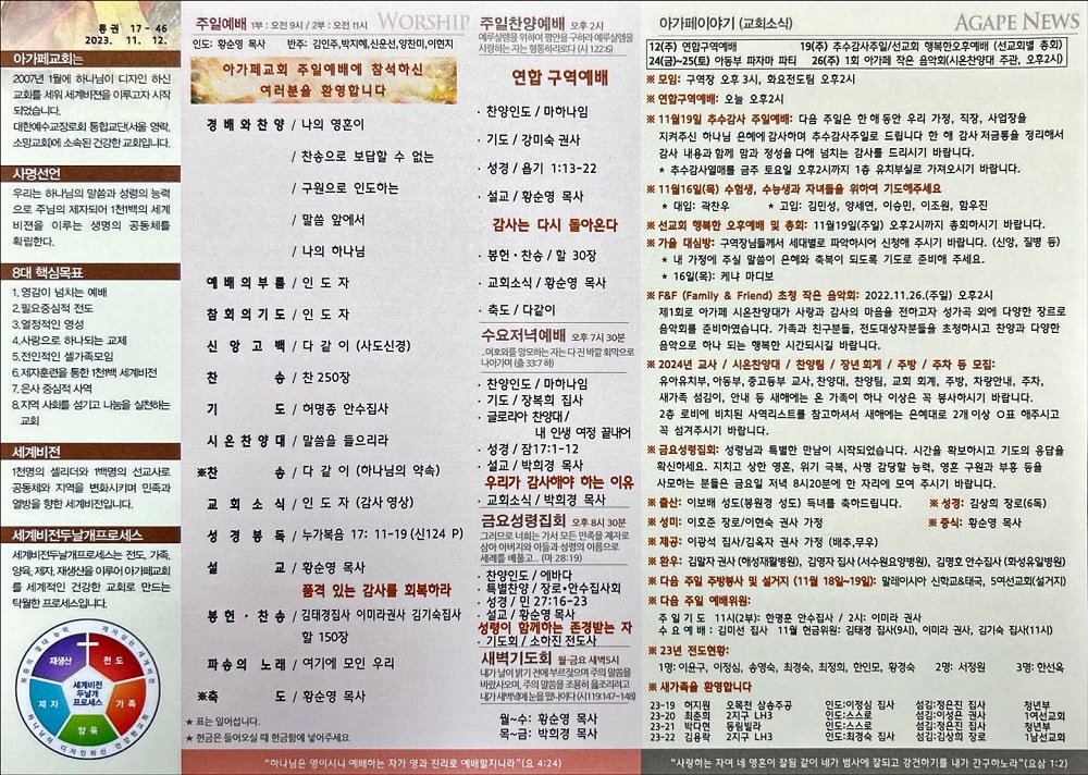샬롬! 대한예수교장로회 아가페교회에 오신걸 진심으로 환영합니다.