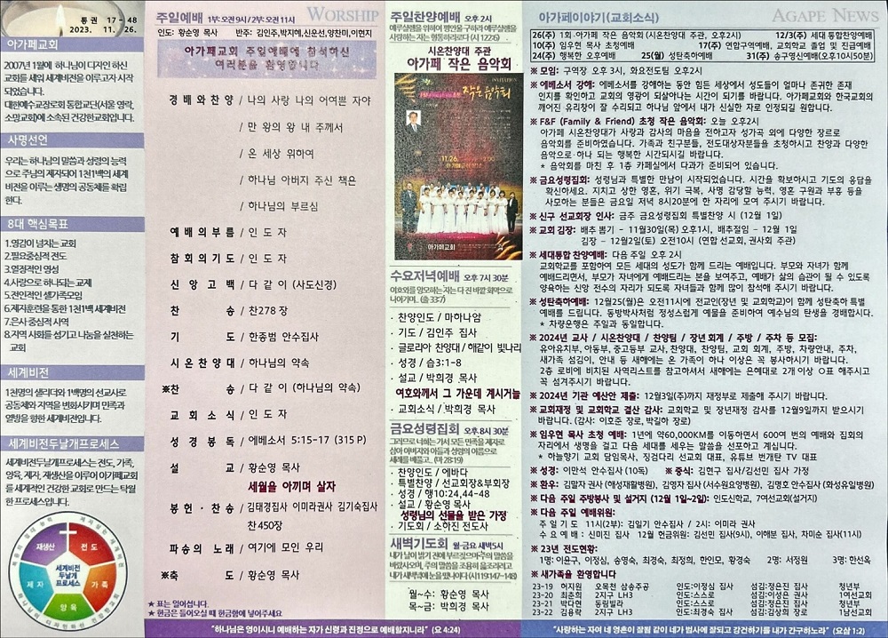 2023년 11월 26일 아가페교회 소식