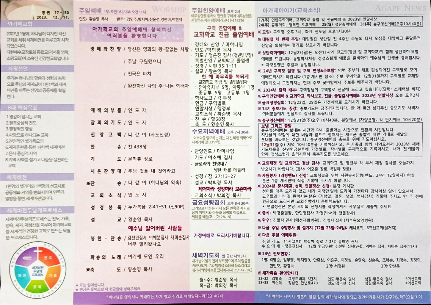 2023년 12월 17일 아가페교회 소식