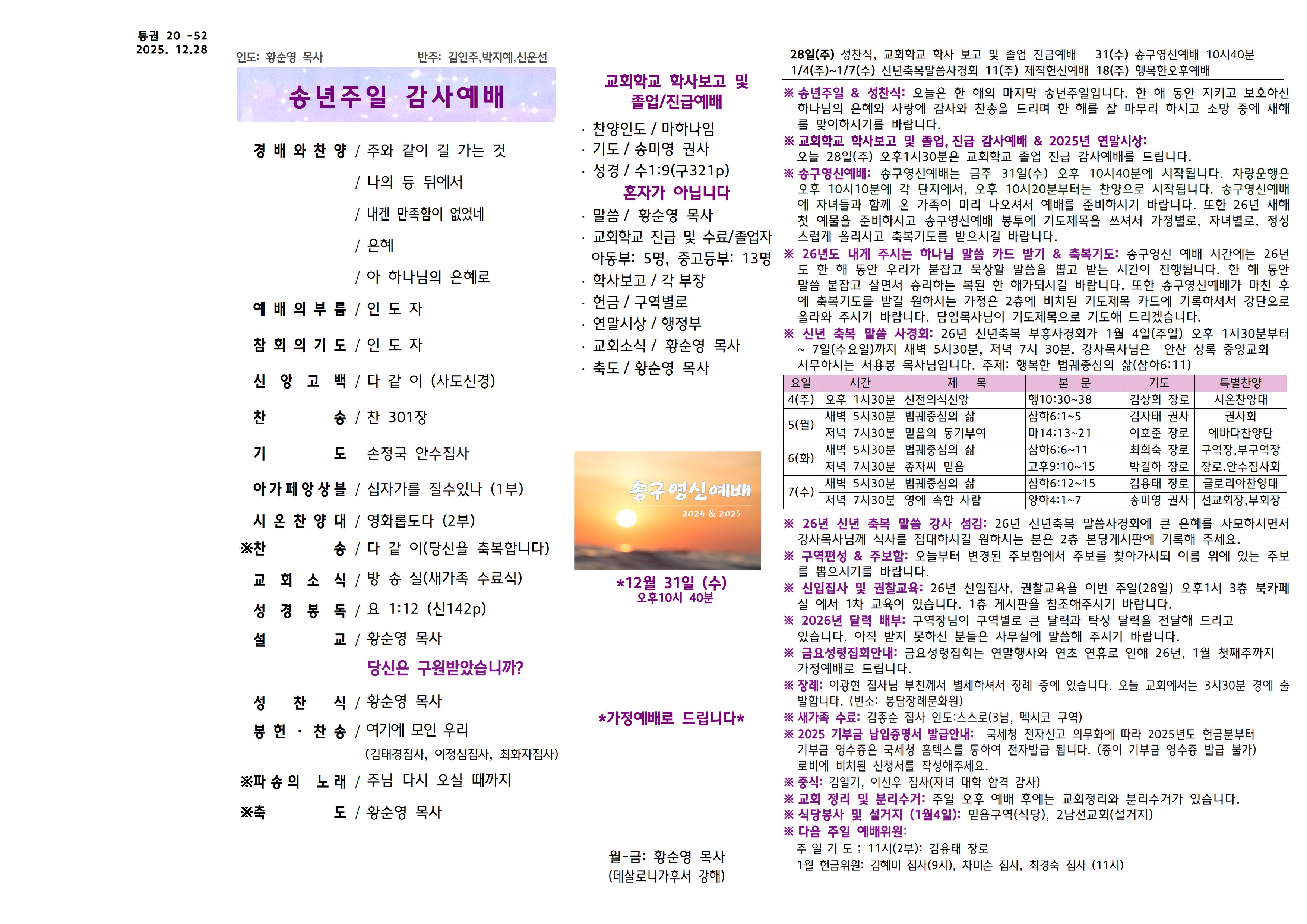 2025년 12월28일 아가페교회 소식